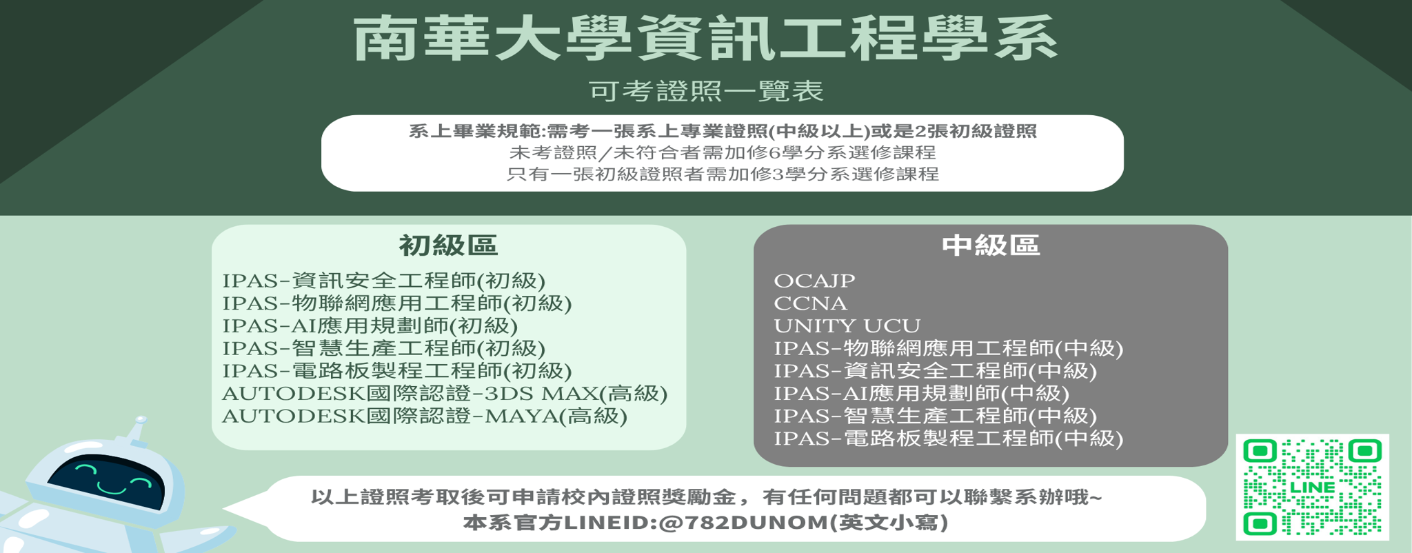 3.具備敬業的環境認知與樂群的社會關懷,能運用資訊科技為人類生活需求謀福祉。