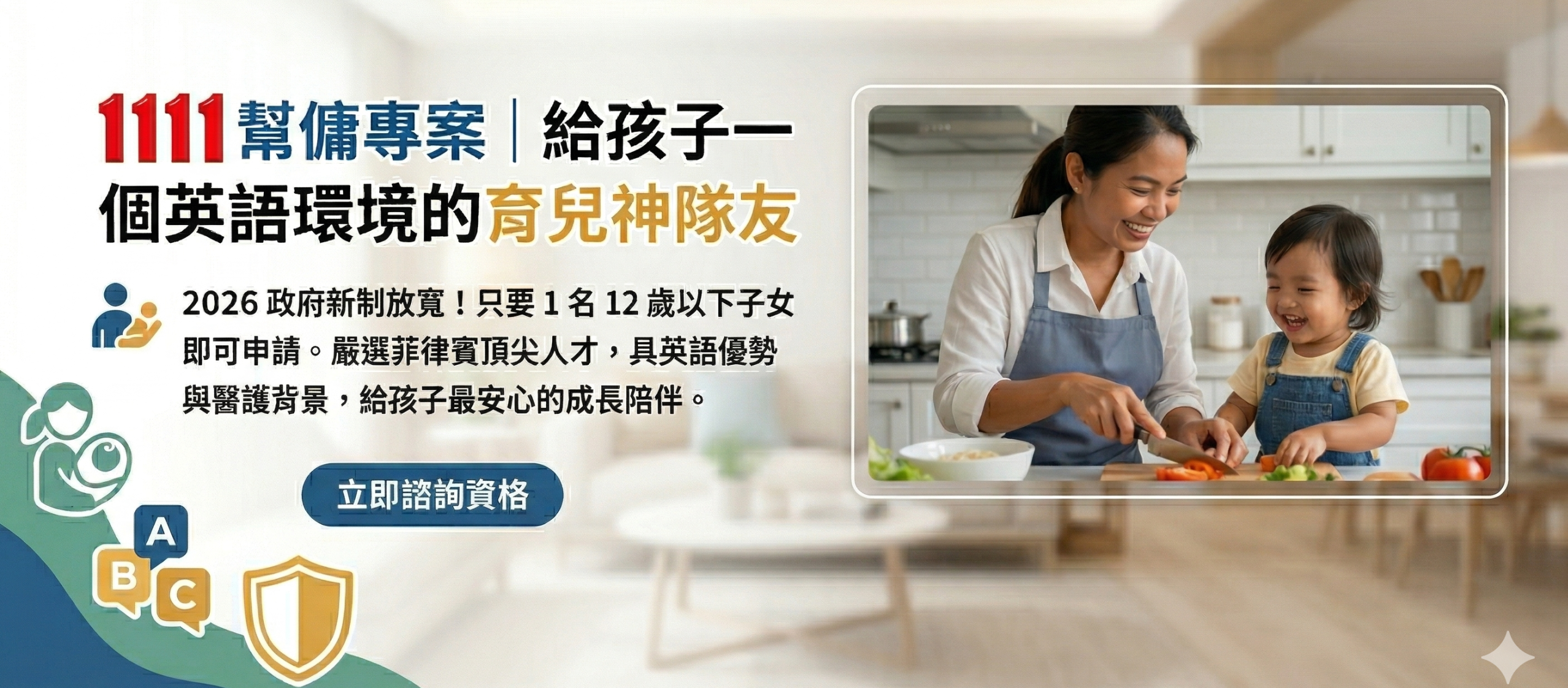 菲律賓為英語系國家,幫傭具備流利口說能力。在日常陪伴中,為孩子營造最自然的英語互動空間,讓語言學習融入生活點滴。