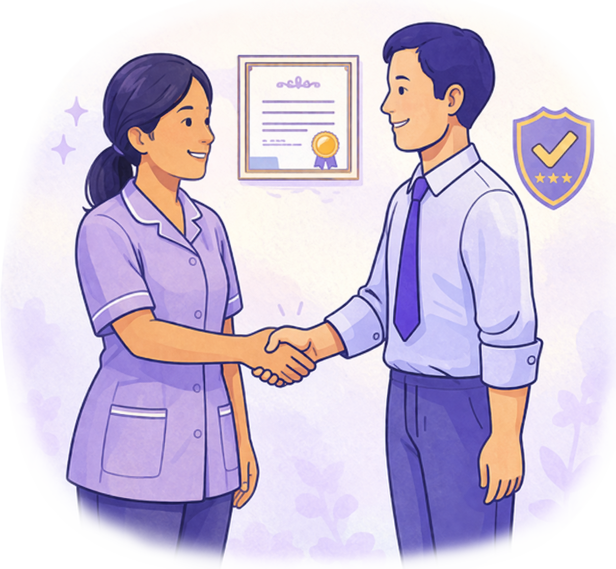 嚴格要求每一位幫傭具備「無犯罪紀錄證明(良民證)」並通過高標準健檢,堅守您家庭的安全與健康底線。