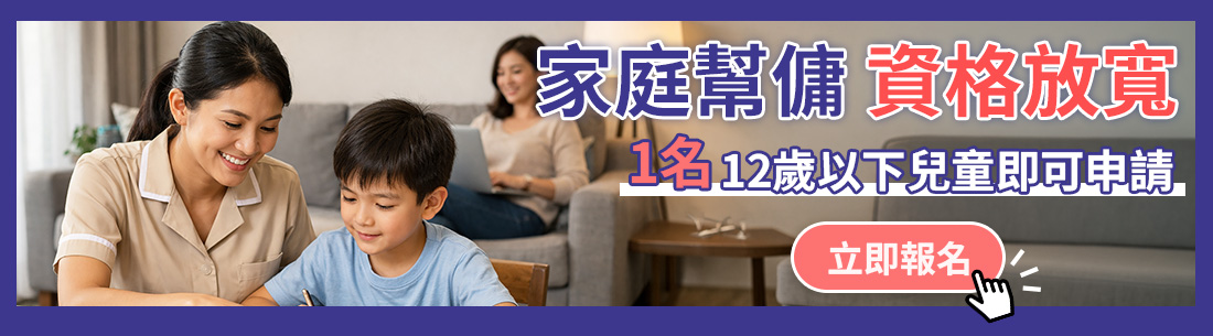 是的!過去申請幫傭需要極高的點數門檻(如多胞胎或多位幼童),新制大幅簡化為「只要有一名未滿 12 歲子女」即可申請,這讓多數雙薪家庭都能輕鬆跨過門檻。