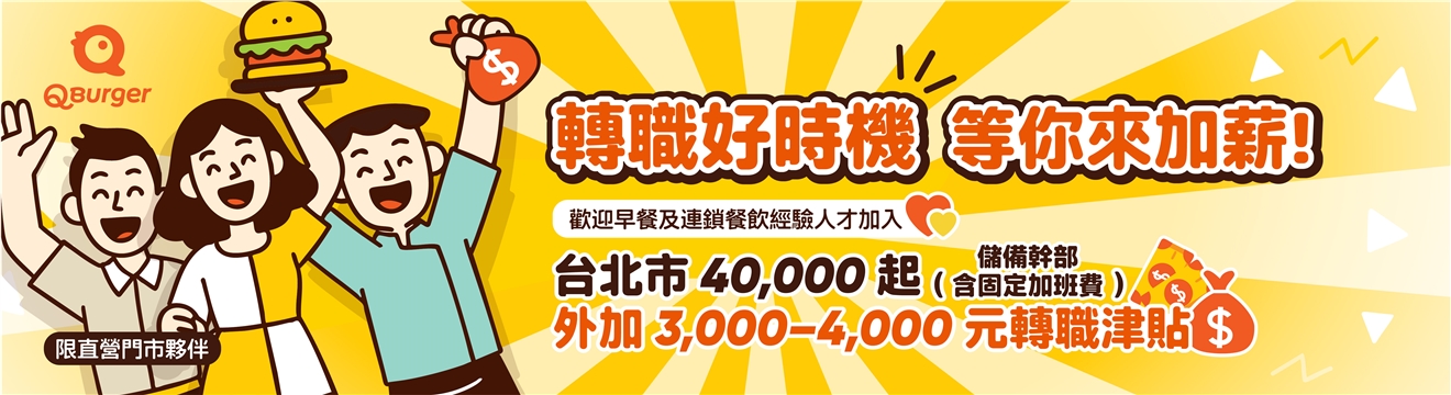 Q BURGER 大安區 x 儲備店經理【一頭班 x 雙...